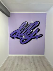 Bij Dailyfocus zijn we gespecialiseerd in graffiti-kunst voor kinderkamers. Een van de meest populaire diensten die wij aanbieden, is het spuiten van de naam van uw kind op de muur. Met een breed scala aan lettertypen en stijlen zorgen wij ervoor dat de kamer een uniek en persoonlijk tintje krijgt. Naast namen kunt u bij ons ook terecht voor het laten schilderen van favoriete stripfiguren, cartoons of dieren, waardoor de kamer een vrolijke en thematische uitstraling krijgt die perfect past bij de belevingswereld van uw kind.